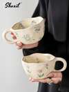 shoxil 1pc Ceramic Coffee Cup, Breakfast Mug, Coffee Mug With Flower Pattern, For Hotel Office Home