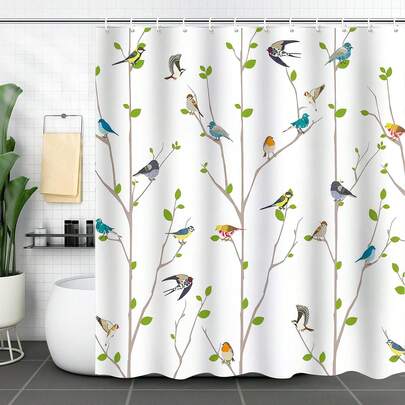 Colorful Bird Shower Curtain, Birds On Tree With Green Leaves Spring Shower Curtains For Bathroom, Waterproof Polyester Fabric Bath Curtain With Hooks,Bathroom Decor And Accessories,Room Decor,Perfect For Home, Hotel, Vacation, Gift - A - View 1