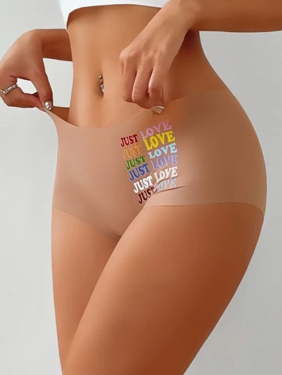 Colorful Letter Graphic Panty - Camel - View 4