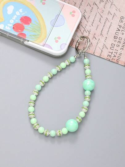 Colorful Solid Ab Beaded Phone Charm With Transparent Card - Green - View 1