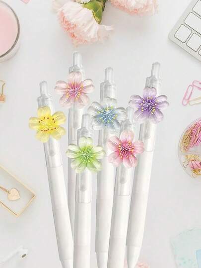Colorful Transparent Cherry Blossom Five-Petal Resin Flower Gel Pen, Black 0.5mm, Fashionable, Cute And Exquisite Signature Pen, Needle Pen, Suitable For Notebooks, Stationery, Doing Homework, Drawing, Art Students - Black - View 10