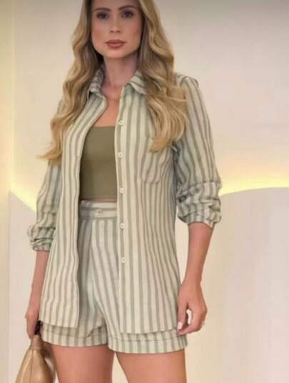 Combination Set Consisting Of A Long-Sleeved Top And Shorts.