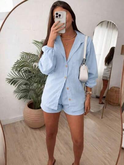 Combination Set Consisting Of A Long-Sleeved Top And Shorts.