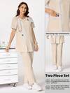 TaskEZ Uniform Set: V-Neck Short Sleeve Tailored Blouse And Drawstring Straight Leg Casual Pants, Scrub Sets