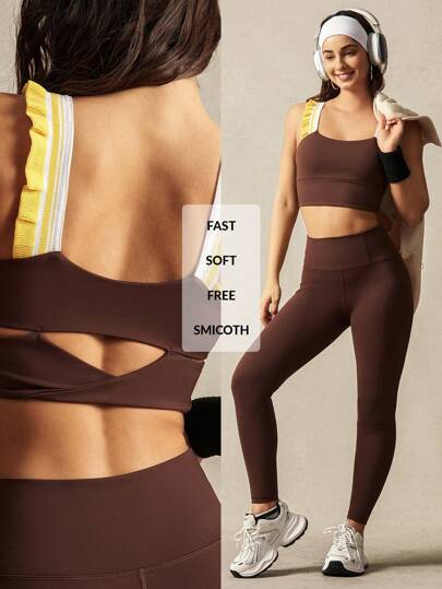 VARSITIE Contrast Color Wavy Edge Beautiful Back Tight Women Sports Tees & Tanks - Multicolor - View 1