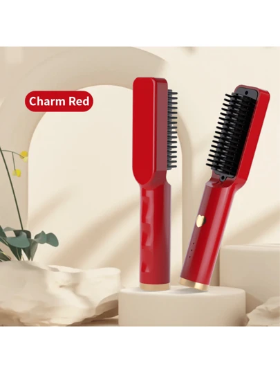 Cordless Hair Straightener Usb Travel Portable Charging Dual-Use Ceramic Straightening Comb - Red - View 1