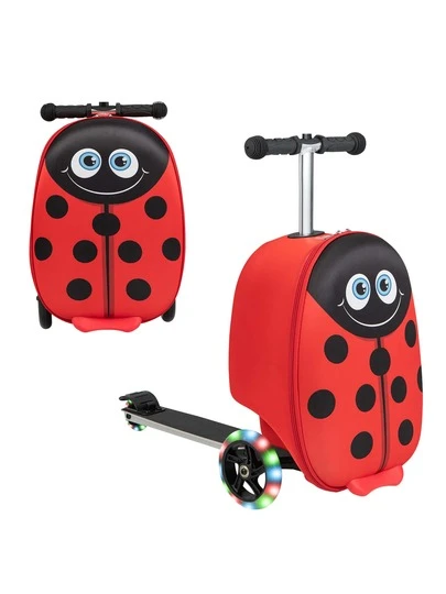 Costway 2-IN-1 Folding Ride on Suitcase Scooter with LED Wheels Brake System Kids toy Gifts - Red - View 1