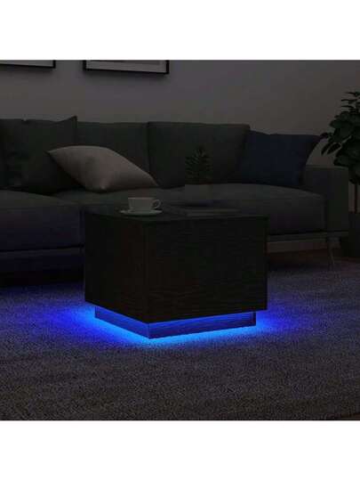 vidaXL Couchtisch Mit LED-Leuchten Schwarz Eichen-Optik 50x50x40 Cm - Black - View 1