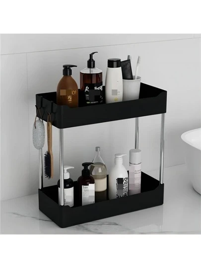 Countertop Plastic Storage Rack, Multi-layer Bathroom Shelf, Slim Storage Rack For Washstand Countertop, Bathroom Cosmetics Storage Rack, Multi-purpose Storage Organizer - Black - View 1