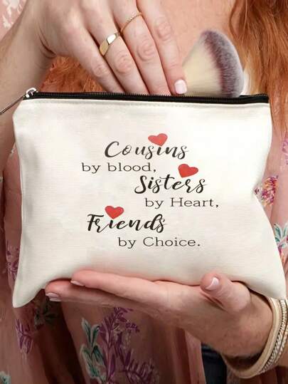 Cousin Gifts For Women - Cousins By Blood, Sisters By Heart, Friends By Choice - Funny Cosmetic Makeup Bag From Daughter Son Kids Novelty Birthday Christmas Graduation Present - Beige - View 1