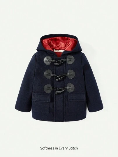 Cozy Pixies Baby Boy Flap Pocket Duffle Button Hooded Overcoat - Navy Blue - View 1