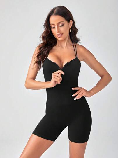 Easithlete Crisscross Backless Sports Romper - Black - View 1