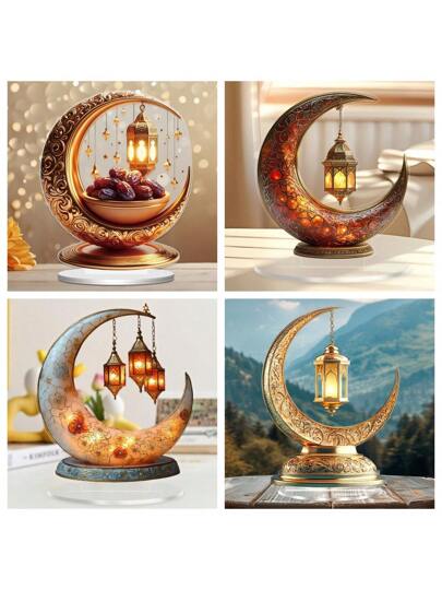 Cross-Border Eid Al-Fitr Decorative Acrylic Crescent Moon Display Piece, Home Living Room Countertop Hanging Accessory, Holiday Decor Item - Multicolor - View 6
