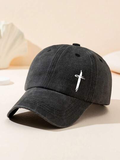 Mũ lưỡi trai in hình chữ thập, màu trơn, kiểu dáng bạc màu, phong cách thể thao thường ngày, nhẹ, có thể điều chỉnh, kiểu mũ "bố" dành cho nam và nữ, mùa hè, đi biển.