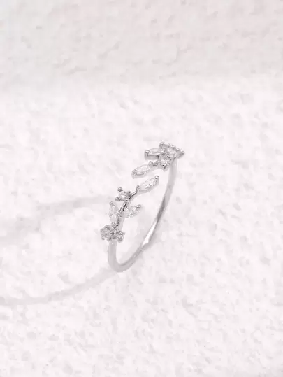 Cubic Zirconia Decor Cuff Ring - Silver - View 1