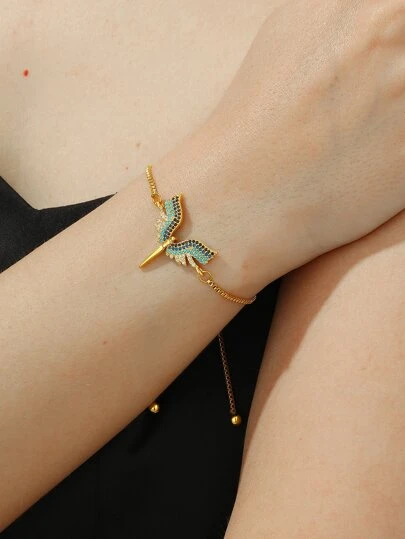 Cubic Zirconia Wing Decor Bracelet - Yellow Gold - View 1