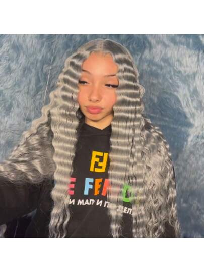Curly Wig Long Wave Wigs Grey Synthetic Wig For  Deep Wave Lace Front Hair 28 Inch Long Curly Light Grey Wig Daily And Party USe - Light Grey - View 1