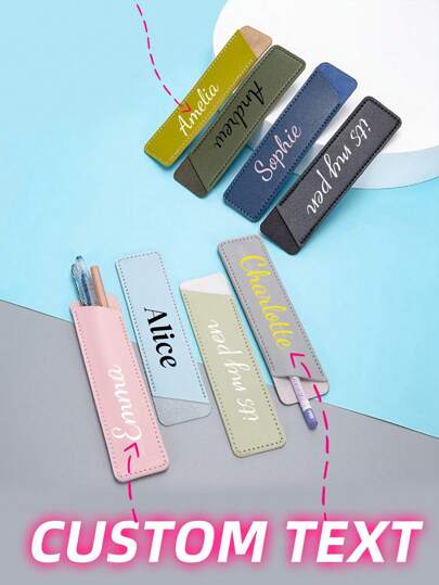 Custom Name Text, Pen, Pencil, Automatic Pen, Neutral Pen, Leather Pen Case Leather Pen Bag Protective Case Solid Color Pen Case,PU Creative Leather Pen Case, Simple Leather Pencil Case, Single Pen Pen Case, Leather Protective Case Custom, Long Single Stationery Pen Pen Sharpie Pen Holder Small Pen Bag Leather Storage Case - Multicolor - View 1