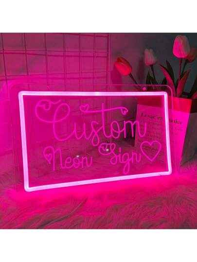 Custom Neon Light Wedding Decoration, USB Engraved Neon Light, Customized Neon Light For Back To School, Mother's Day, Personalized LED Neon Light Suitable For Wall, Commercial Bar, Home Store, Bedroom Decor - Retangular Shape-35*19cm - View 1