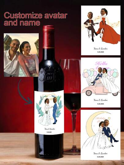 Custom Photo Wine Label, Personalised Wedding Big Head Sticker Label, Couples Picture Gift For Bride And Groom - Multicolor - View 1