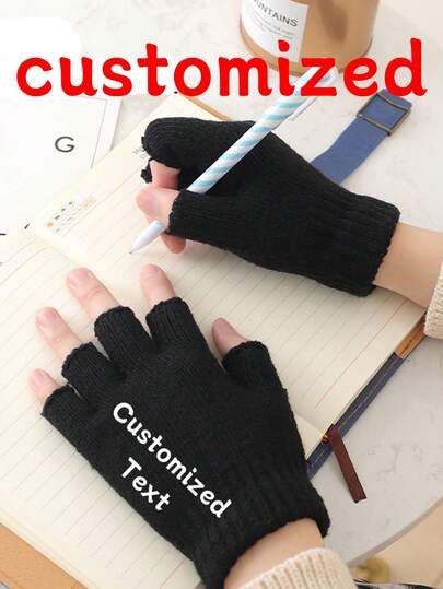 Customized Fingerless Gloves, Touchscreen Capable, Warm & Breathable Knitted Gloves, Team Customization - Text Customization - View 1