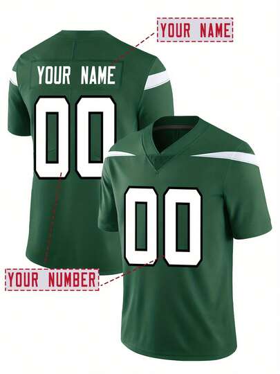 Customized Name And Number Men's Embroidered American Football Jersey New York Green V-Neck Personalized Short Sleeved Shirt Party Game Training Competition Sports Top DIY S-XXL - Green - View 1