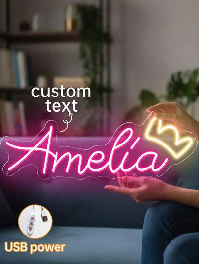 Customized Name Neon Sign, Personalized Wall Decoration, Wedding Decoration, Name Neon Sign, LED Neon Sign For Teenagers, Personalized Gifts, Bedroom Decoration, Home Decoration USB LED Light, Birthday Gift, Give It To Him Or Her, Youth Day, Father's Day, Graduation Ceremony, Wedding, Home Living Room, Bedroom, Office - Neon Sign - View 1