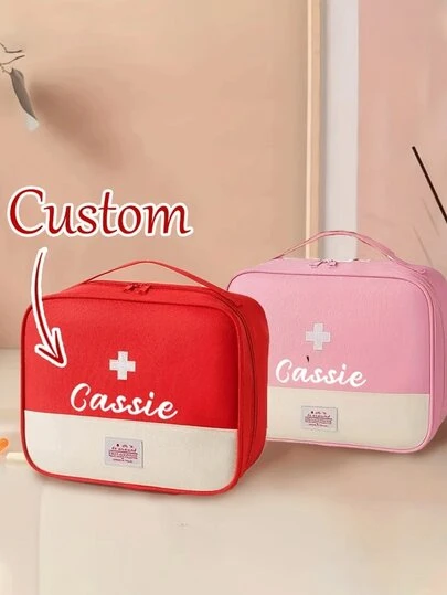 Customized Name/Text Travel Medical Storage Bag, Household Medicine Organizer, First Aid Kit, Outdoor Hunting, Hiking, Camping And Home Emergency Medical Supply Storage Pouch - Multicolor - View 1