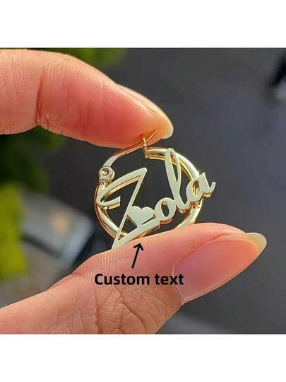 Customized Stainless Steel Name Hoop Earrings, Elegant Personalized Heart Design, Fashion Jewelry Gift For Her, Vintage Bohemian Style Cute Name Hoops, Perfect For Weddings And Valentine's Day - Multicolor 2 - View 1