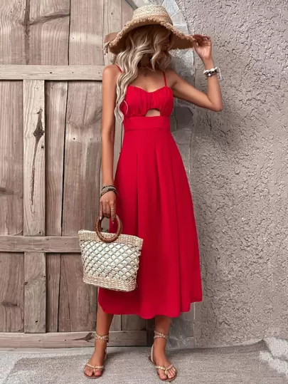 SHEIN VCAY Cut Out Ruched Cami Dress - Red - View 1