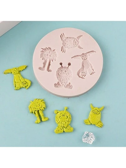 Cute Cartoon Monster Silicone Mold Cake Accessories Decoration Glue Mold Diy Chocolate Baking Tools - Light Grey - View 6