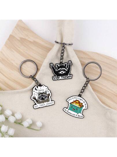 Cute Raccoon Animal Keychain Party Street Decor Pendant With Raccoon Quotes - Black and White - View 1