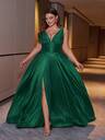 D&M Plus Size Knitted Elastic Satin Flounced Sleeveless Floor-Length Prom Dress With Glittery Ruched Design And V-Neckline Party Dress Wedding Guest Dress Formal Dress Evening Dress,Gown