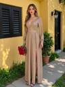 D&M Wavy Line Sequin Deep V Flared Loose Long Sleeve Women's Party Dress