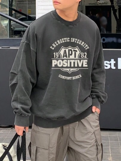 DAZY Men Gray Graphic Letter Print Pullover Sweatshirt For Autumn - Grey - View 1