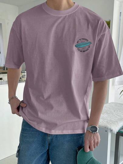 DAZY Men's Letter Printed Round Neck Short Sleeve T-Shirt - Purple - View 1