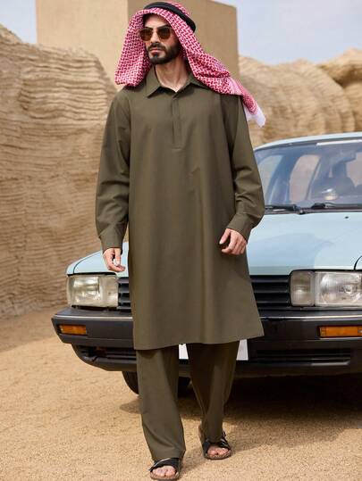 DAZY Men's Spring Military Green Robe Shirt And Pants Set - Army Green - View 1