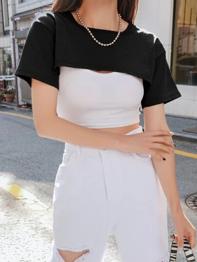DAZY Solid Crop Top Without Cami Top - Black - View 1