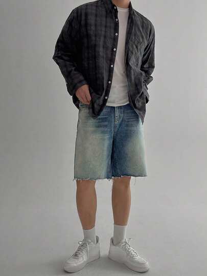 DAZY Summer Solid Blue Distressed Washed Men's Denim Shorts - Blue - View 1