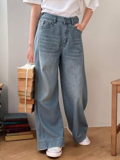 DAZY Tween Girl Casual Distressed Wide Leg Jeans,Back To School Clothes,Fall Clothes - Medium Wash - View 1
