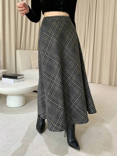 DAZY Women's Autumn/Winter Fashionable Plaid A-Line Skirt - Dark Grey - View 1