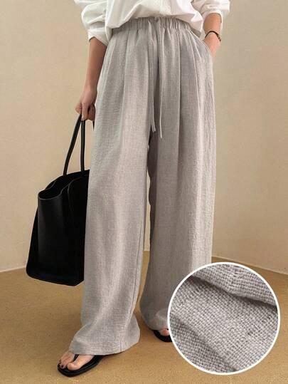 DAZY Women's Elastic Waist Drawstring Tie Loose Straight Leg Casual Pants - Apricot - View 1