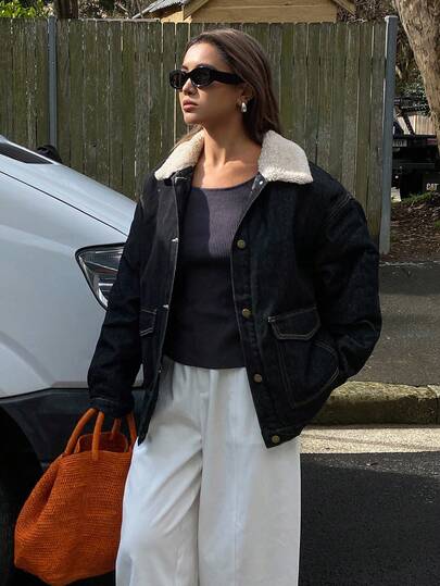 DAZY Women's Patchwork Denim Collar Padded Coat Jacket - Blue - View 8