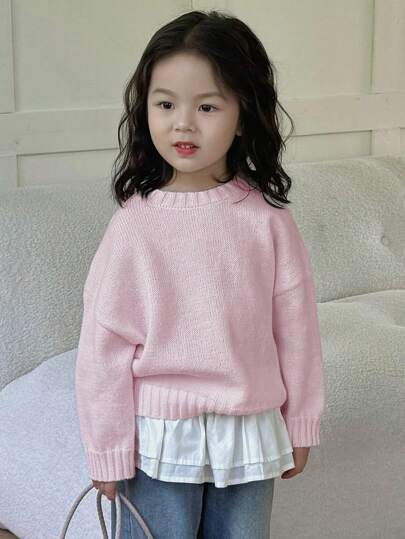 Dazy Kids Young Girl Girls' Solid Color Sweater, Fall - Pink - View 1