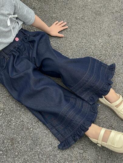 DAZY Young Girl Loose Fit Washed Pleated Wide Leg Jeans - Dark Wash - View 4