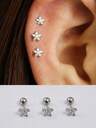 3Pcs Dainty Star Design Stud Hoop Stackable Earring Set For Women, Silver Color Hypoallergenic Exquisite Cartilage Star Dangle Huggie Hoop Stud Earring Everyday Earring Stack For Sensitive Ears Multiple Piercing Jewelry For Women Girl Men