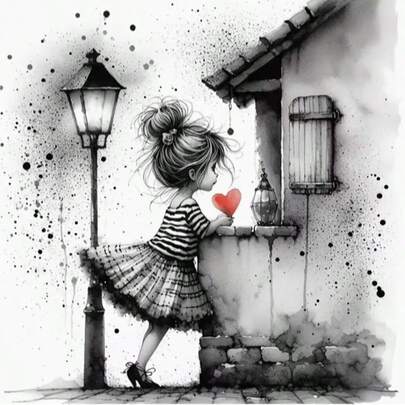 DIY Diamond Painting Kit, Black & White Little Girl With Love, 5D Diamond Painting Set, Full Round Diamond Accessories, Artistic Home Wall Decor, Suitable For Beginners, Holiday & Birthday Gift, 40x40cm/15.75x15.75in - View 1