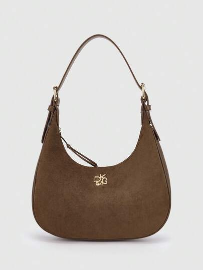 DK DKMG 1pc Burgundy Crocodile Embossed PU Leather Handbag, Crescent Shoulder Bag, Fashionable & Elegant, Versatile For Party, Casual, Dating, Lightweight For Daily Use And Gift Giving - Brown - View 1