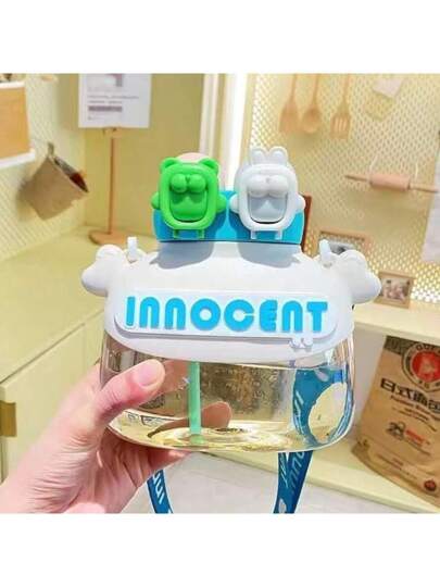 DOUBLE NOZZLE CHILDREN'S BOTTLE, WITH ADJUSTABLE STRAP, STICKERS FOR DECORATING, 1200ML CAPACITY. - Beige - View 1
