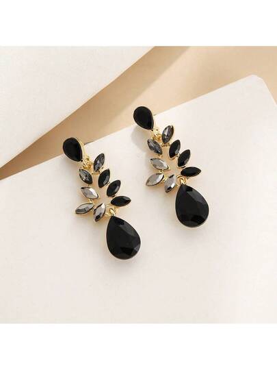 Simple & Versatile Women's Drop Shaped Pendant Earrings With Synthetic Gemstones, Creative Design Jewelry, Gift For Party, Festival Commemoration, Matching - Black - View 1